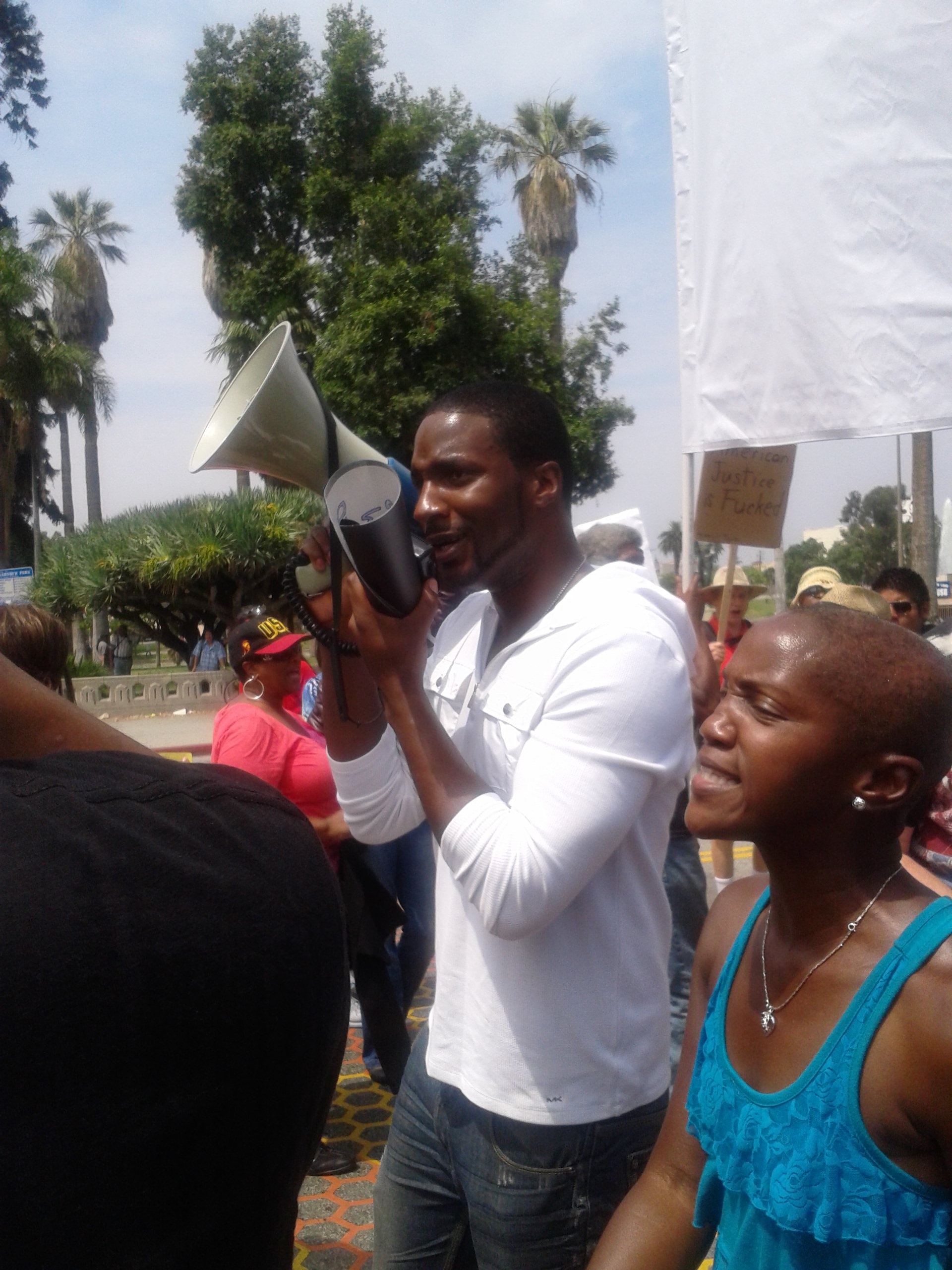 This Saturday, the National Action Network organized over 100 rallies in as many cities to protest the unconscionable inaction of the State of Florida in allowing George Zimmerman to shoot an unarmed black teenager to death and receive no censure or punishment from their judicial system. If I had to venture a guess, I’d say there were probably between 750 and 1,000 people at the rally, which was held at 9 AM in front of the Federal Courthouse in downtown Los Angeles. After a series of small speeches and prayers, a large number of those at the rally set off on a march through the streets of LA to express their discontent with the current state of affairs and their expectation that the Federal Government follow civil rights precedent by charging Zimmerman for the crimes that Florida’s obscene Stand Your Ground law erroneously absolved him of. Here are some photos from the rally: