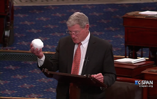 Last week, Senator James Inhofe (R-OK) stood up in Congress and took a large snowball out of a plastic bag he had brought with him. Inhofe, who is the 7th most senior senator in the Republican Party, then proceeded to hold the snowball aloft before a scantly populated Senate floor as proof that global warming was a hoax. “You know what this is?” Inhofe asked. “It’s a snowball, from outside here. So it’s very, very cold out…very unseasonable…so here, Mr. President, catch this.” And with that, the Oklahoma Senator tossed the snowball to on of his underpaid, baby-faced congressional aides and continued on peddling his ignorant, climate change-denying drivel propless. Inhofe’s reasoning, that, since it’s cold and snowing in the place where I live at the end of February—a time when it’s often, but not always, not cold and snowing—global warming must be a sham, is the sort of myopic, pigheaded logic one would expect from a 10 year old. But James Inhofe is not a 10-year old. He is 80 year old man who was recently reinstated as the chairman of the Senate’s Committee on Environment & Public Works and whose chairmanship all but guarantees fossil fuel-friendly partisan gridlock in Congress for at least the next 2 years—gridlock we can ill afford, because mother nature’s about to drop the hammer.