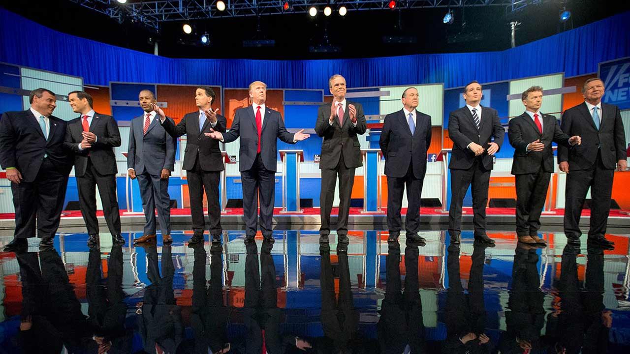 To be fair, some of these men—Jeb Bush, Marco Rubio, John Kasich—are not idiots per se. They are jingoistic, plutocratic, pawns of industry with no regard for the civil liberties of anyone with a vagina or a skin color darker than a vanilla latte, but they are not idiots. However, this debate will go down as having the widest assortment of mentally defective asshats in the history of televised presidential debates. Now, since I don’t believe that the rapture is nigh and can’t take a drink without breaking out in handcuffs, the only reason I have watched this debate is to pay homage to Jon Stewart and his decade and a half of masochistic comedic journalism, and to provide you with the opportunity to laugh at something that, if you think about it for too long, is bloody horrifying.