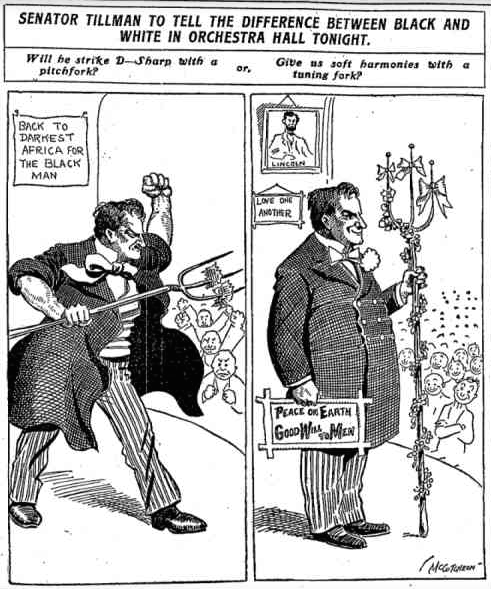 But Roosevelt was certainly not alone among progressive era reformers in his views on race. Counterintuitively, at the turn of the century it was progressives and not conservatives that led the crusade to crack down on alleged “voter fraud” and to restrict access to the ballot for people of color, even as they crusaded for suffrage for white women. As might be expected, southern progressives turned out to be anything but when it came to race relations and were instrumental in the cementing of Jim Crow in the old Confederacy. Southern progressives like Georgia’s Rebecca Latimer Felton and South Carolina’s “Pitchfork” Ben Tillman—who I have discussed before—are paradoxes that seem completely at odds with our contemporary political landscape.